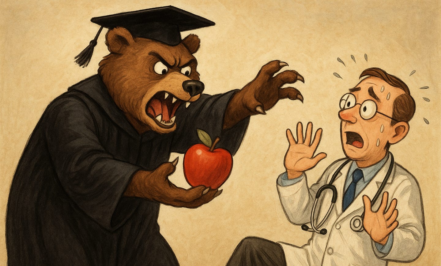 9. Like any self-respecting doctor (an actual doctor, not one of those apple-phobic medical quacks), I will not allow my thousand-year-old title to be stolen by the white coats, who were only granted the right to use the title as a courtesy in the 18th century. HURRUMPH. Joking aside, medical doctorates are legitimate- and the story of the thousand-year-old academic doctorate usurped by medical upstarts is rather oversimplified. However, medical doctors, like academics, also shouldn’t insist on being called doctor, except perhaps in a limited range of circumstances. No one likes the surgeon or family doctor who is fastidious about this stuff in a social setting. Even in a hospital, no one likes the doctor who insists on the title from the nurses, even when the patients aren’t around. Anyone who thinks it’s fine for a medical doctor to insist on a title in a social context, but not an academic is simply a chaser after the approval of those with conventional social status- weak, weak.